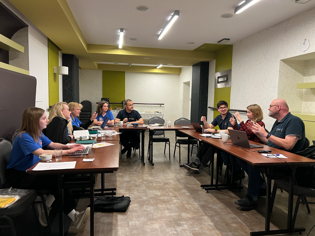 Die THW-Jugend e.V. unterstützt mit ihrem Ukraine-Projekt den Aufbau der Schule der Sicherheit. Die Schule der Sicherheit ist ein teilhaberorientierter Jugendverband im Zivil- und Bevölkerungsschutz der Ukraine. Im Rahmen von Fachkräftebegegnungen geben Jugendleiter:innen der THWJugend ihre Erfahrungen, Kenntnisse und Fertigkeiten an Jugendleitungen aus dem ukrainischen Verband weiter.